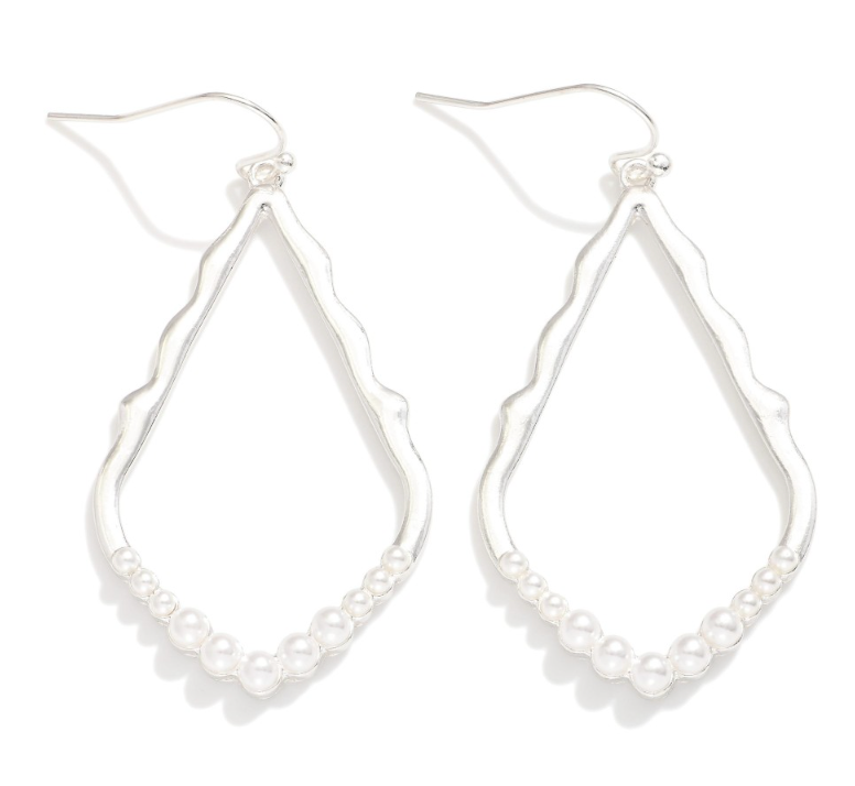 Wavy Metal Teardrop Drop Earrings Featuring Pearl Details