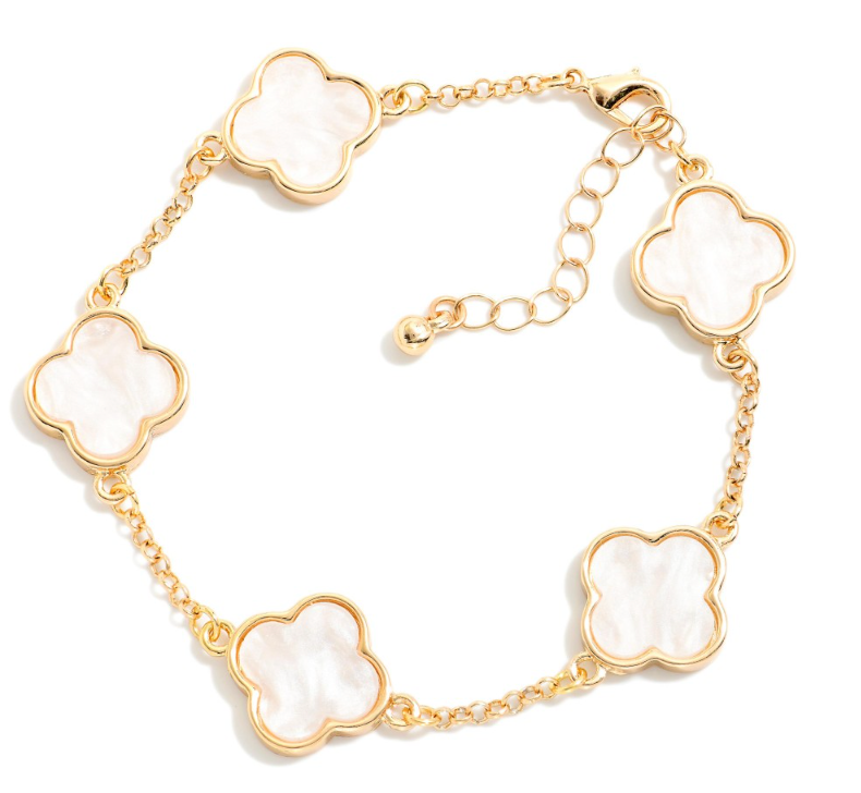 Metal Tone Chain Link Bracelet Featuring Pearlescent Clover Stations