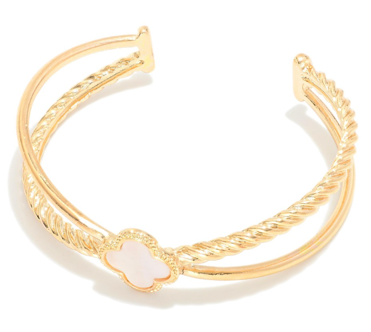 Pearlescent Clover Criss Cross Cuff Bracelet - Gold