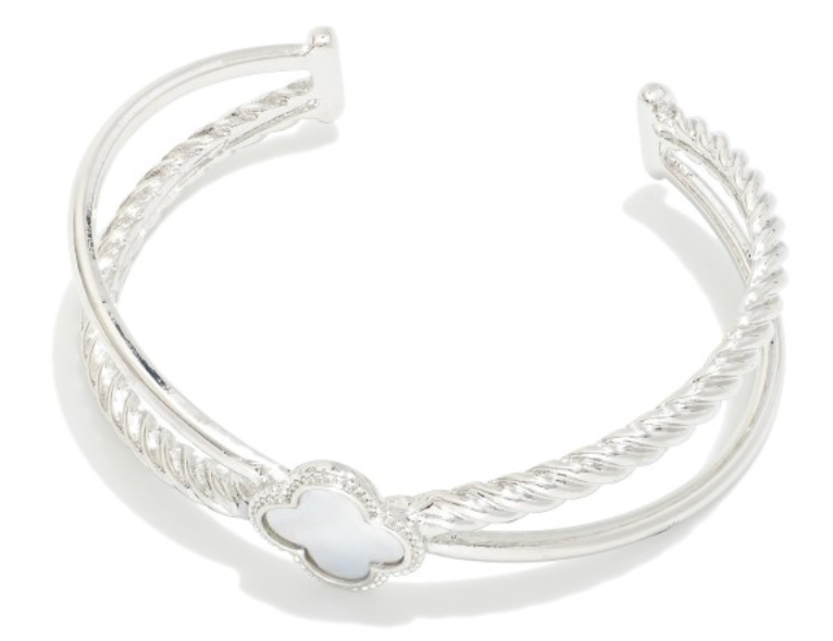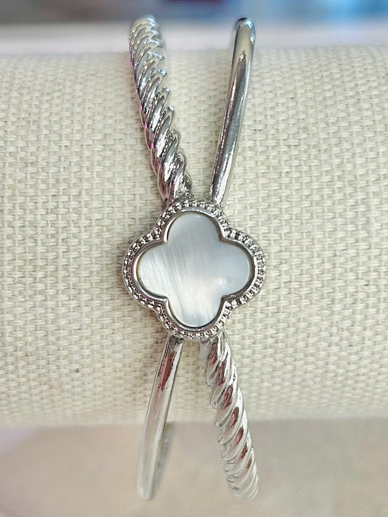 Pearlescent Clover Criss Cross Cuff Bracelet - Silver