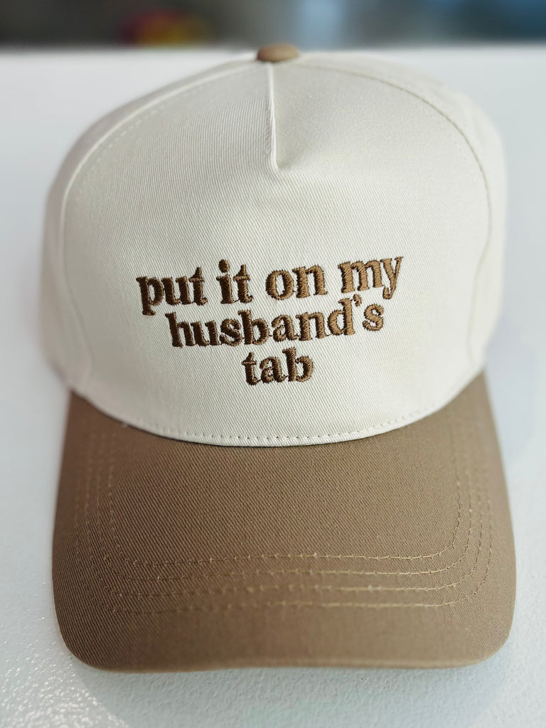 Put It On My Husband's Tab Two-Tone Canvas Cotton Cap - Mocha