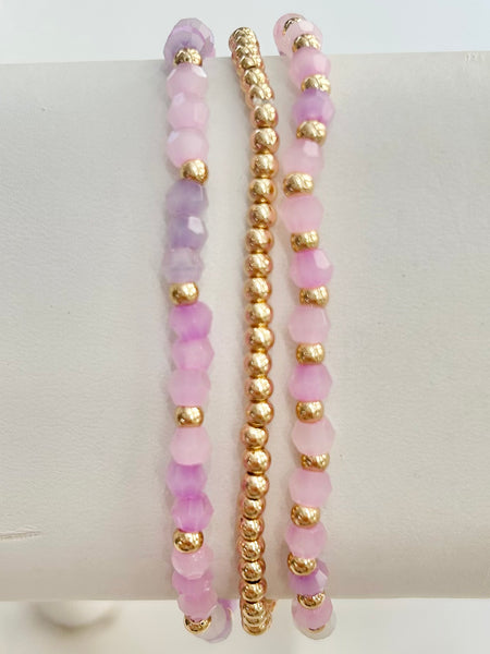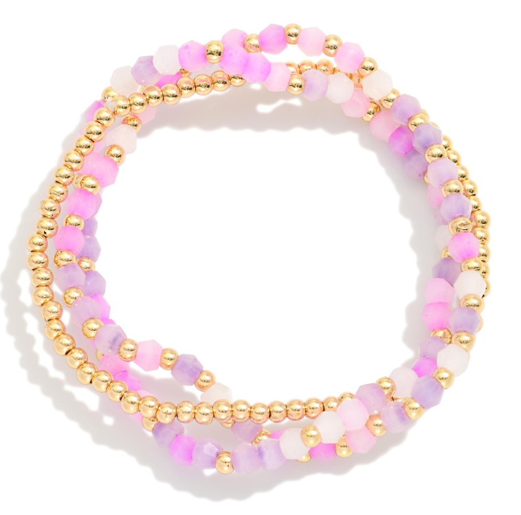 Set of Three Beaded Bracelets Featuring Metal Tones & Faceted Beads
