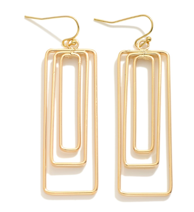 Concentric Metal Tone Rectangles Drop Earrings