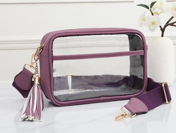 Clear PU Cross Body Bag With Leather Walls and Trim Featuring Detachable Leather Tassel