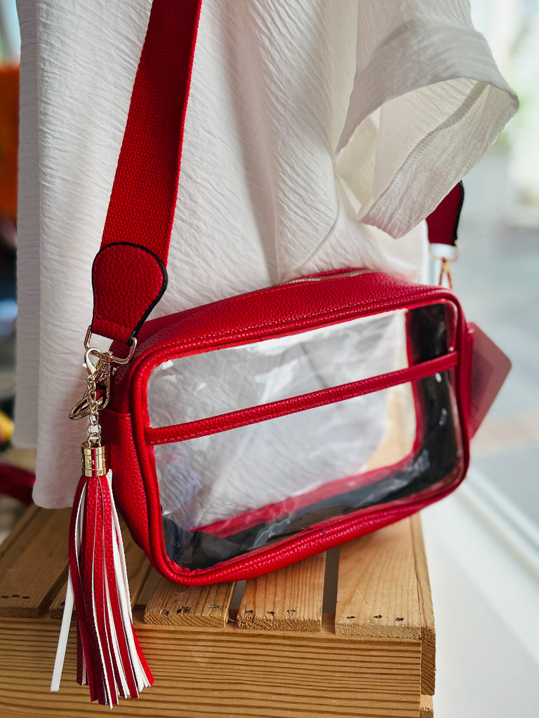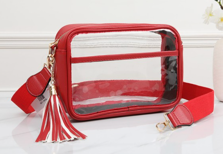 Clear PU Cross Body Bag With Leather Walls and Trim Featuring Detachable Leather Tassel