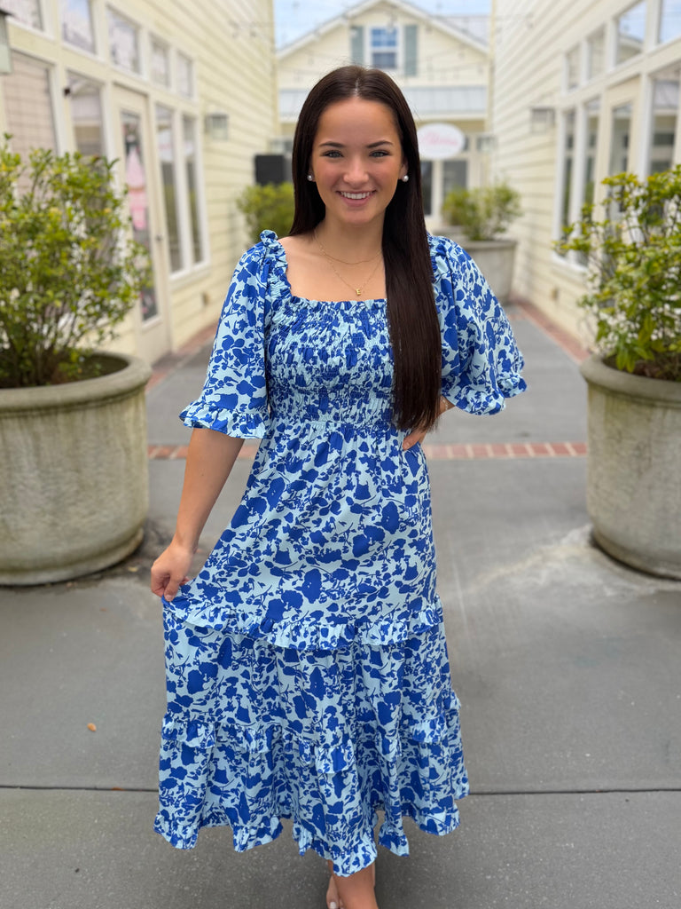 Romantic vibes all the way. Square neckline, smocked bodice, tiered skirt, and bell sleeves make this dress effortlessly chic. Perfect for spring and summer outings.