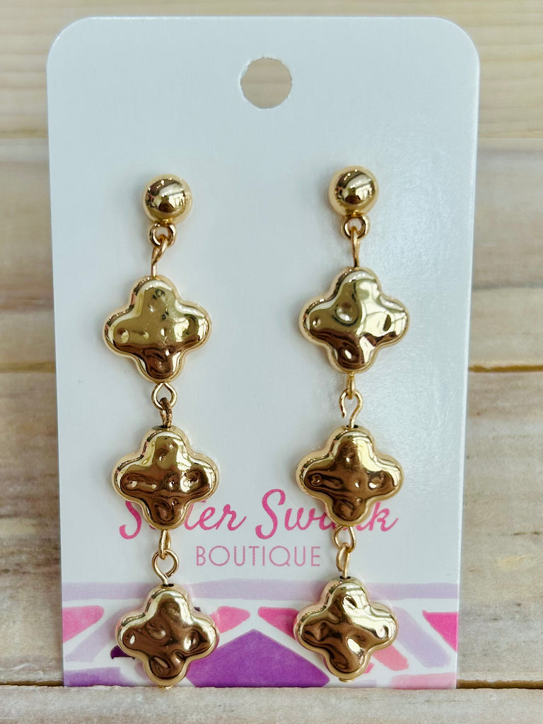 Textured Metal Tone Linked Clover Drop Earrings. Very lightweight!