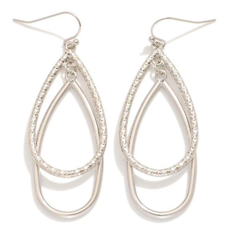 Textured Metal Tone Nesting Teardrop Drop Earrings