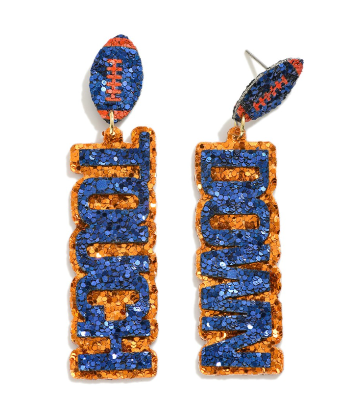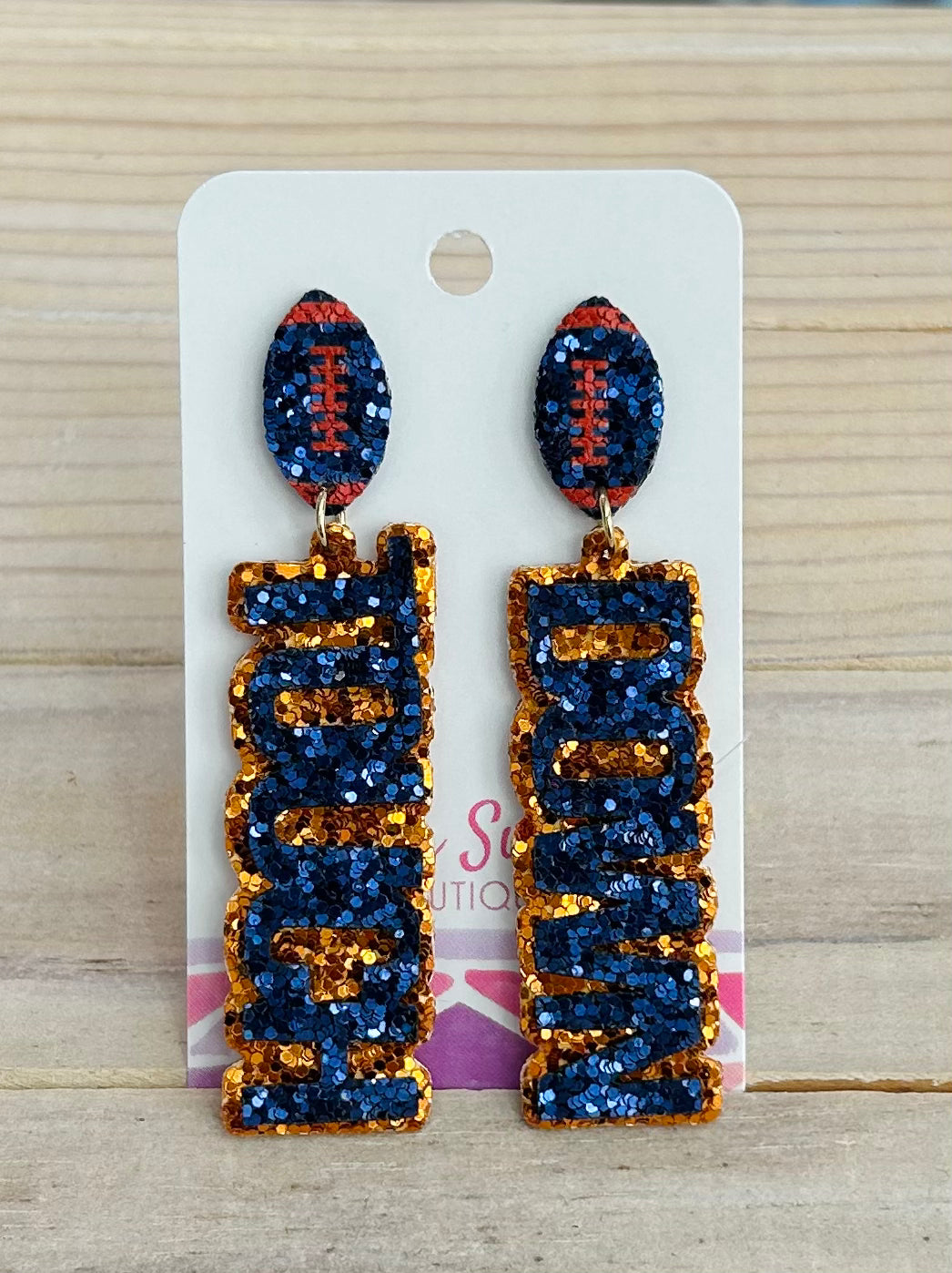 Navy/Orange Touch Down Glitter Football Drop Earrings