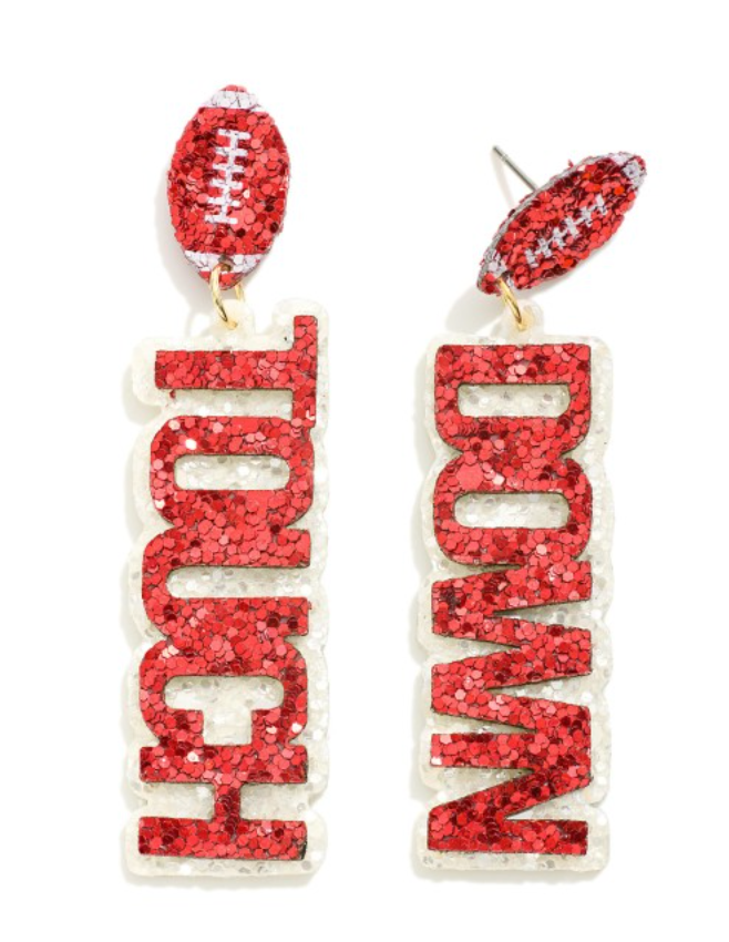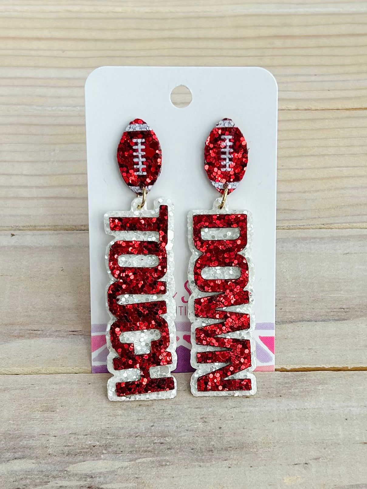Maroon/White Touch Down Glitter Football Drop Earrings