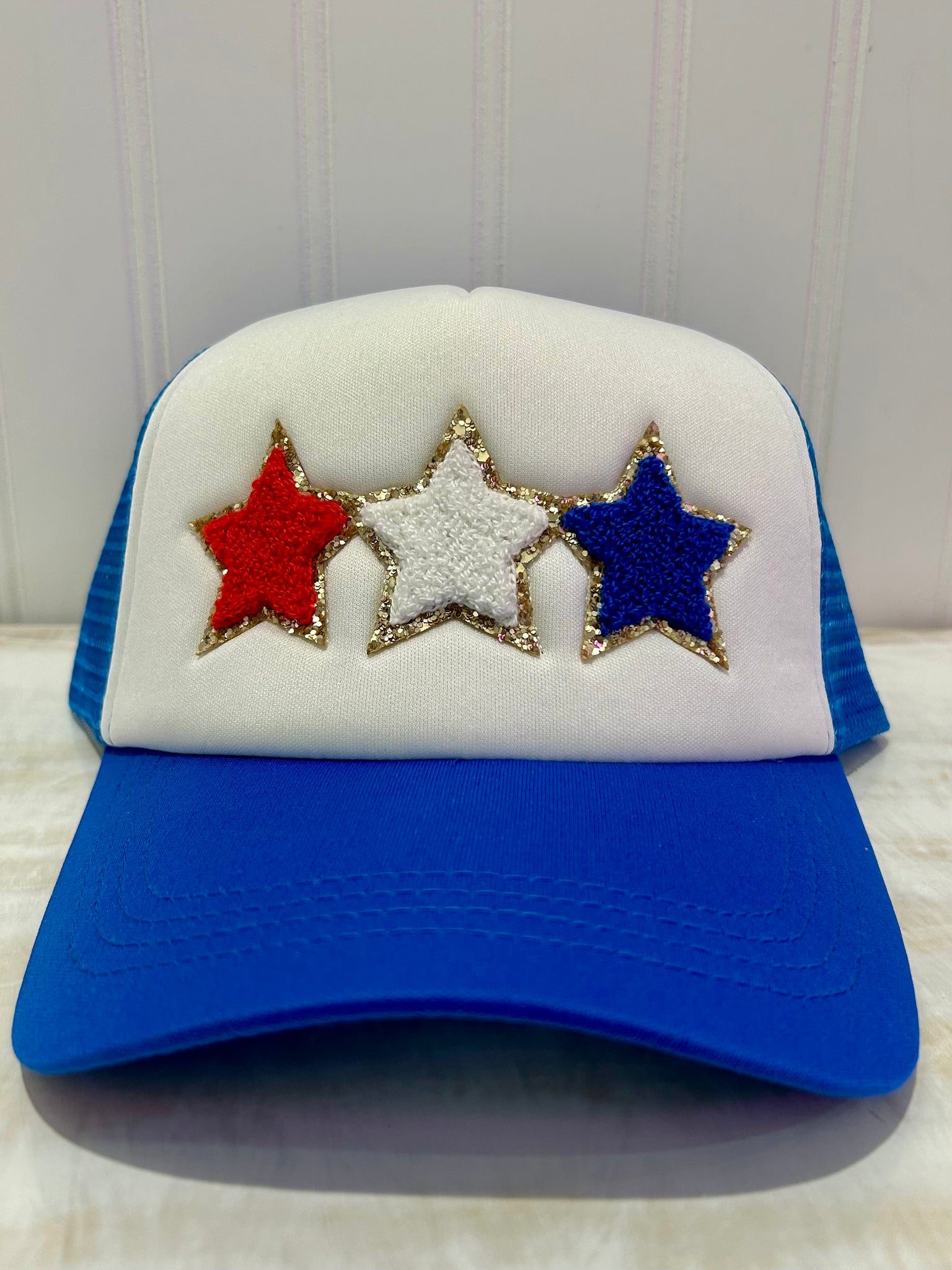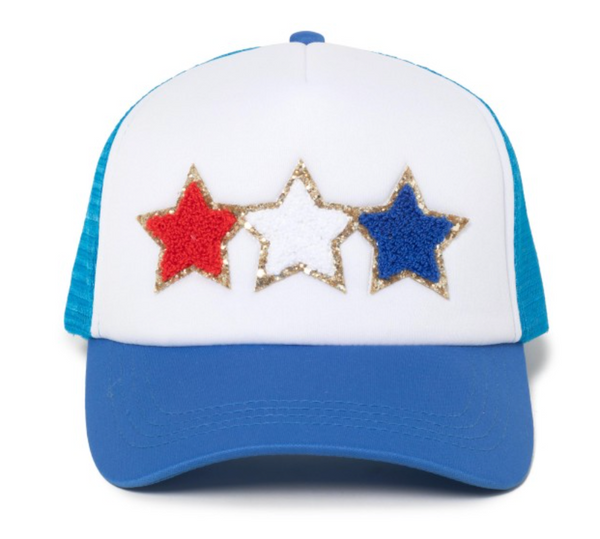 Glitter Chenille Red, White, and Blue Stars Patch Trucker Hat