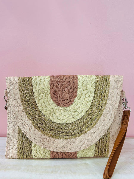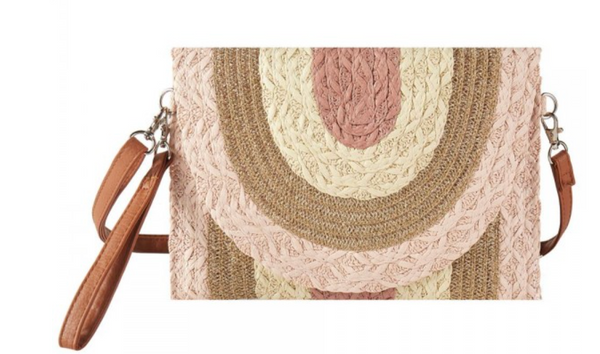 Woven Straw & Tinsel Clutch Cross Body Bag